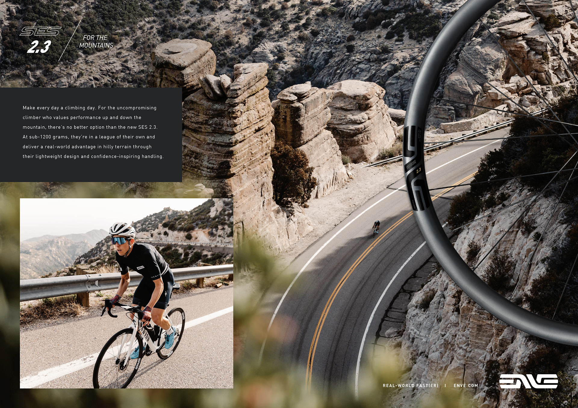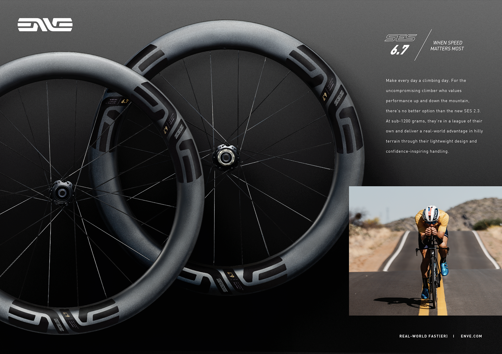 The evolution of ENVE's SES new wheel line—marketing campaign and product graphics. Speed and performance were at the forefront of this campaign.